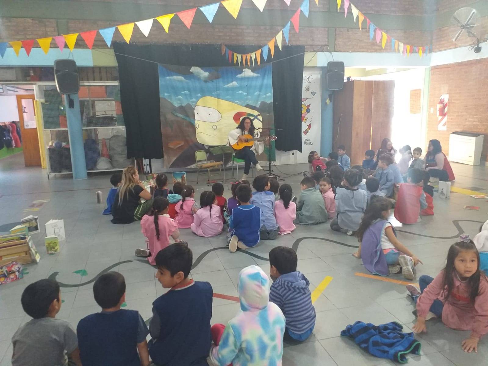 Ese mismo día, la gran Grata se hizo presente en el Jardín Nº7 de Cutral Có para desplegar su espectáculo de narración oral y música en vivo, y para convidar a leer con los bellísimos libros que guarda en su interior la Biblioneta.